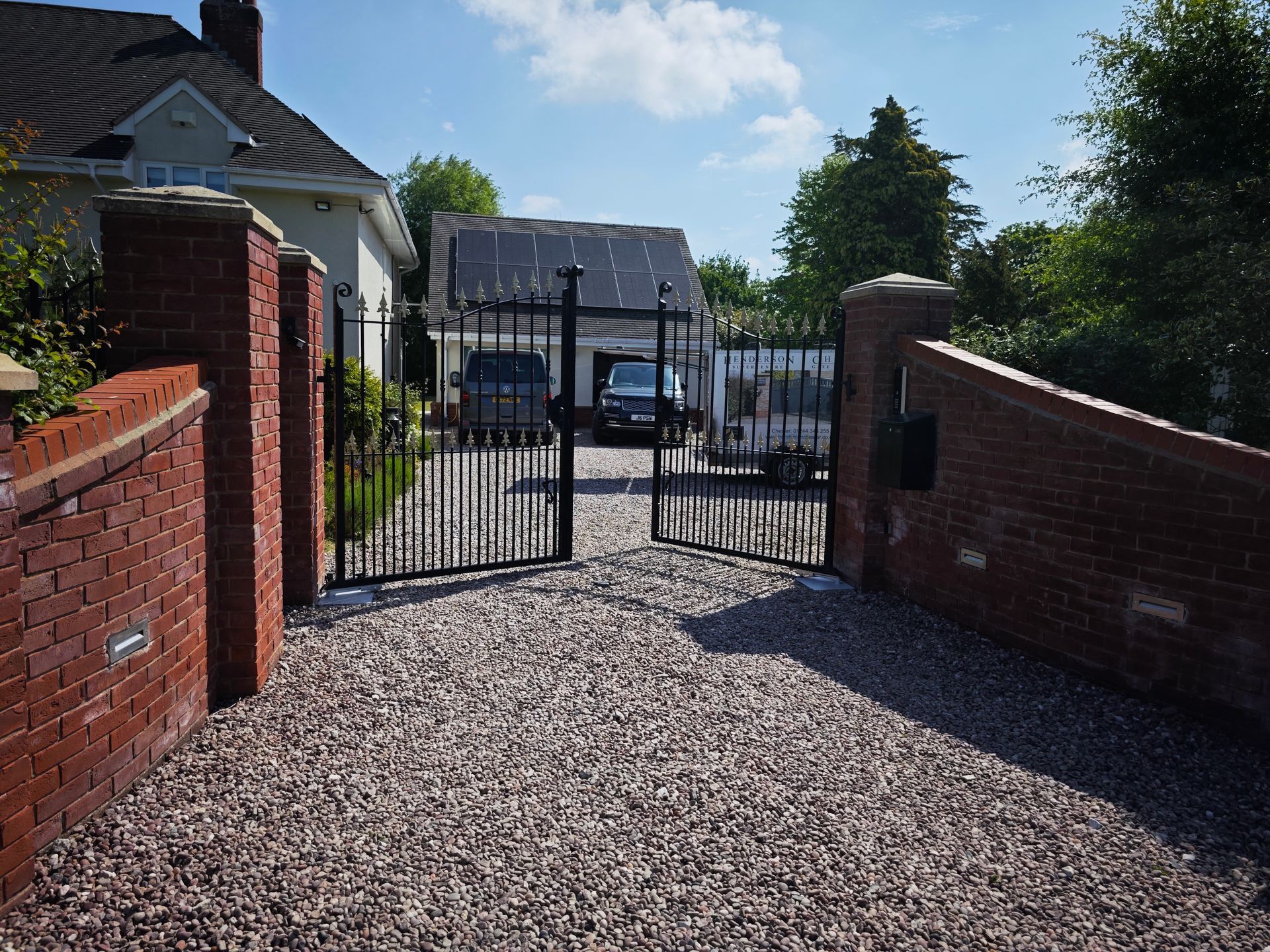 The tired existing gates and automation were removed and replaced with Nice 24volt L-Fab underground motors with several sets of safety photo beams. The new aluminium low maintenance gates are installed onto the existing black steel post's which it was decided to keep as they are in great condition.
