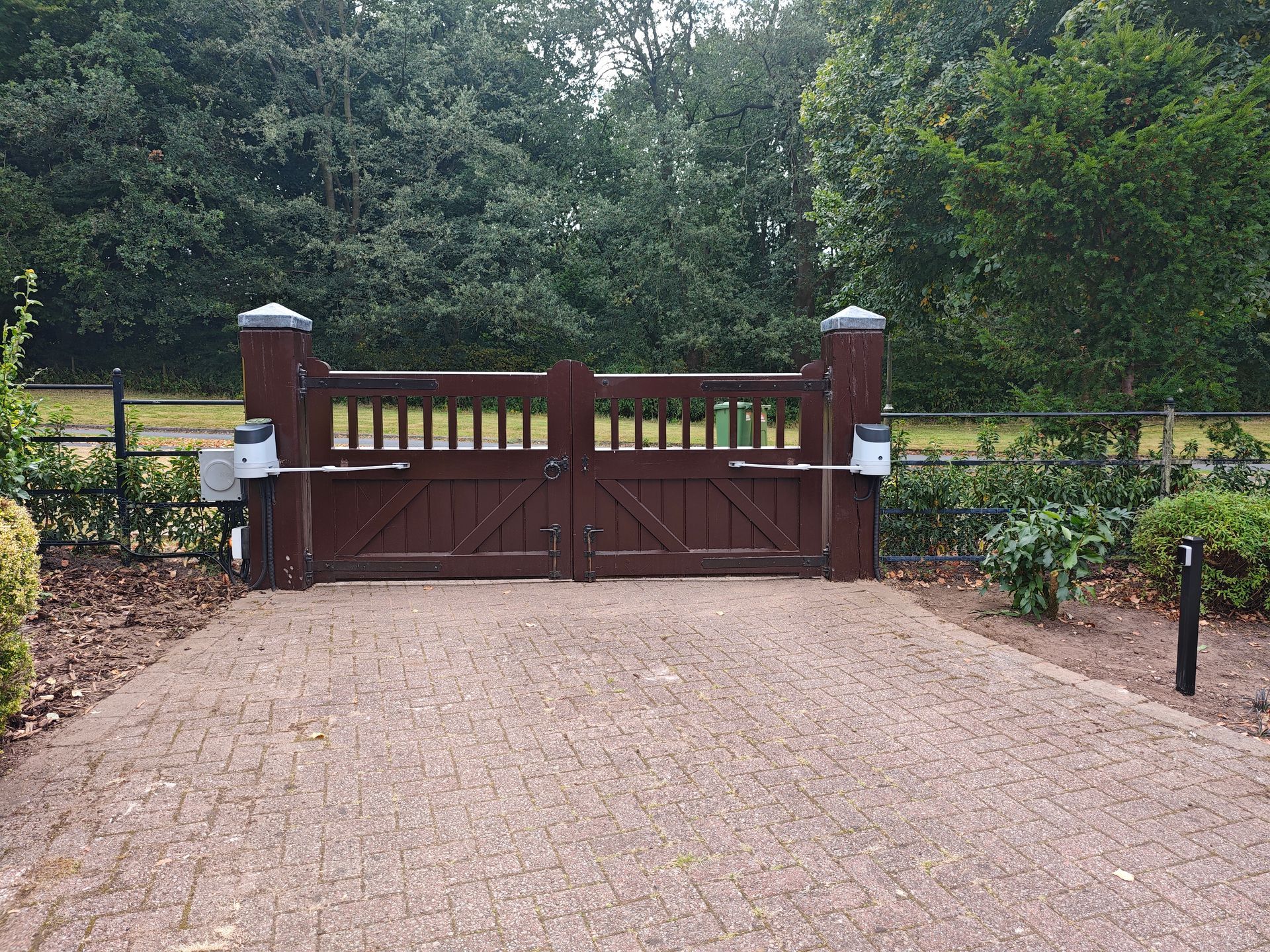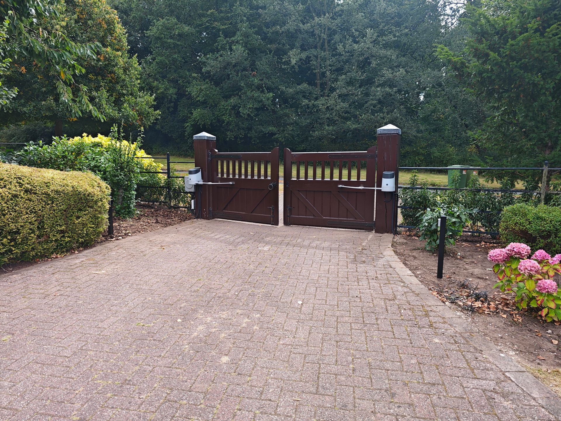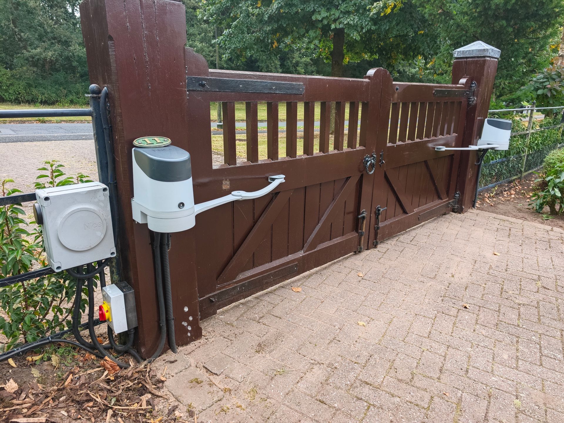 Nice Hopp 24volt articulated motors installed to these existing timber gates. An AES Opyn audio video GSM intercom was also installed giving the customer full control over who has access with dial to open function, user specific keypad codes and QR codes.