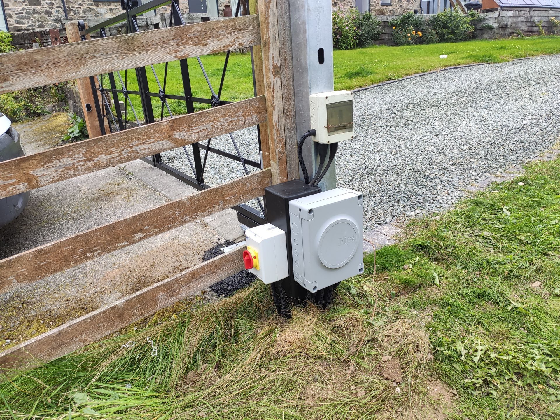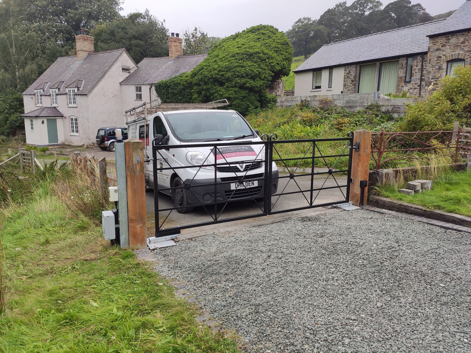 Bespoke steel gates for a project over looking Ruthin. Made from galvanised and powder coated steel this gate design was chosen as it complemented the area as well as providing little wind resistance in such a remote area. Mounted onto Nice L Fab 24 volt underground motors to be as discrete as possible.
