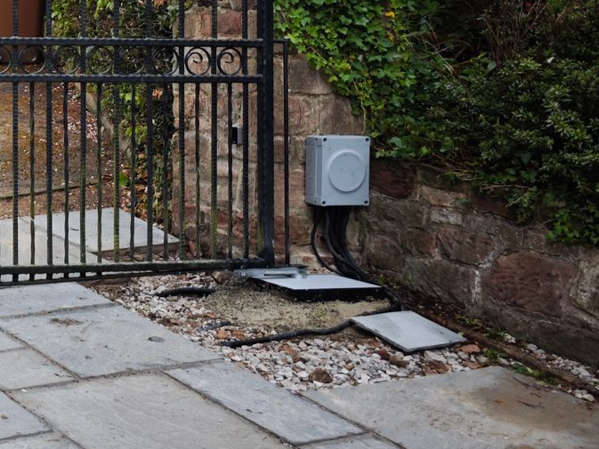 This unusual gate installation required new underground motors. Whilst the drive was being upgraded we installed Nice L Fab 24 volt motors with new wiring throughout and extra safety devices. The existing intercom was retained and wired in successfully.