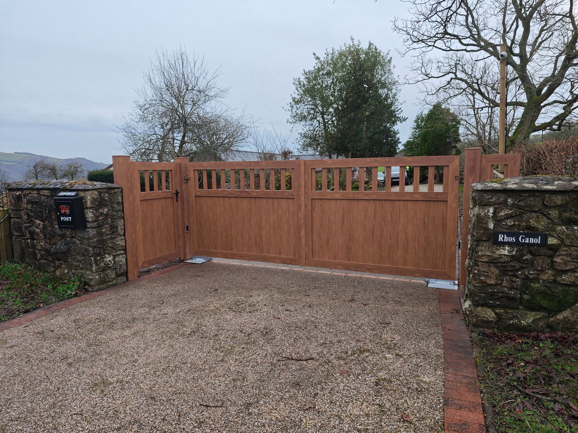 Working with a local fabricator RES Ltd, we automated these made to measure gates and included a Hikvision Audio video intercom.