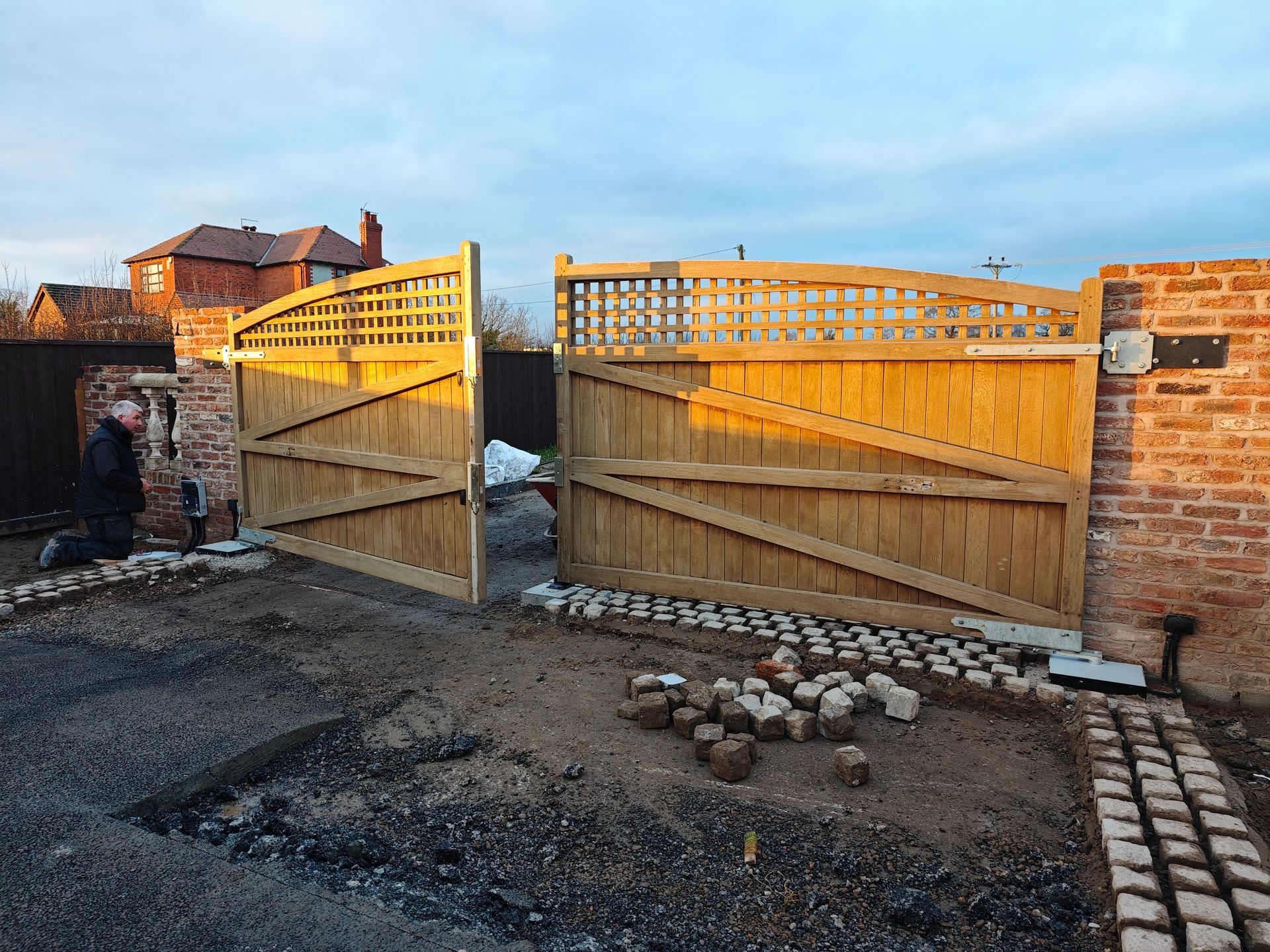 Builder supplied gates motorised with Nice Underground motors, phot cell and safety edges.