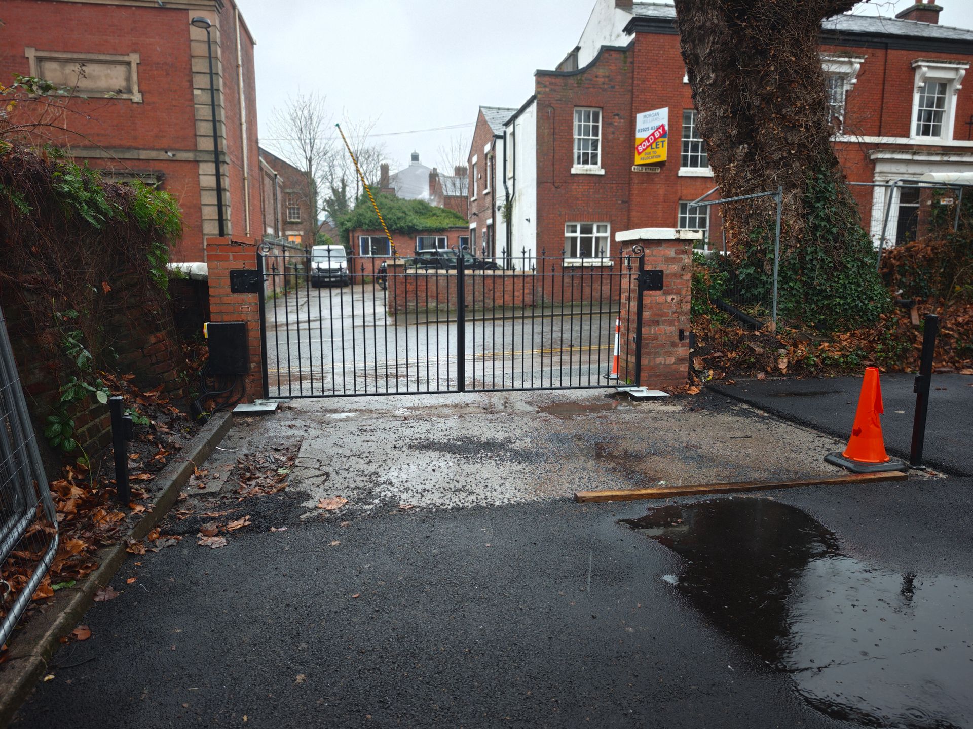 Working with a local fabricator we installed our motors and controls to these steel gates. Access is provided by Intratone key fobs which can be added and deleted remotely if any are mislaid. Egress is by AES exit loop or again using the keyfob.