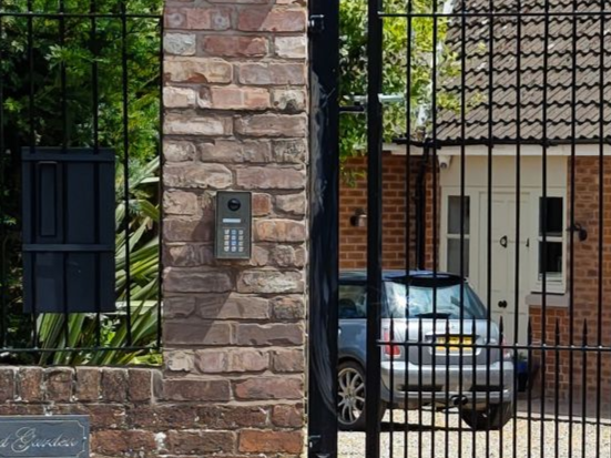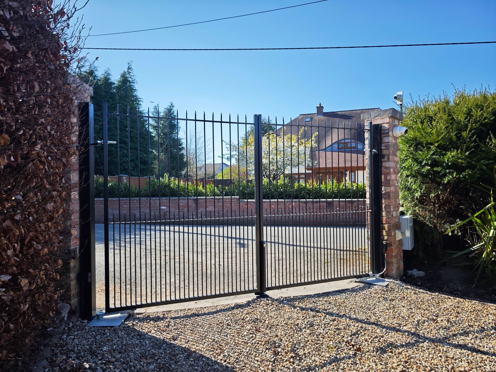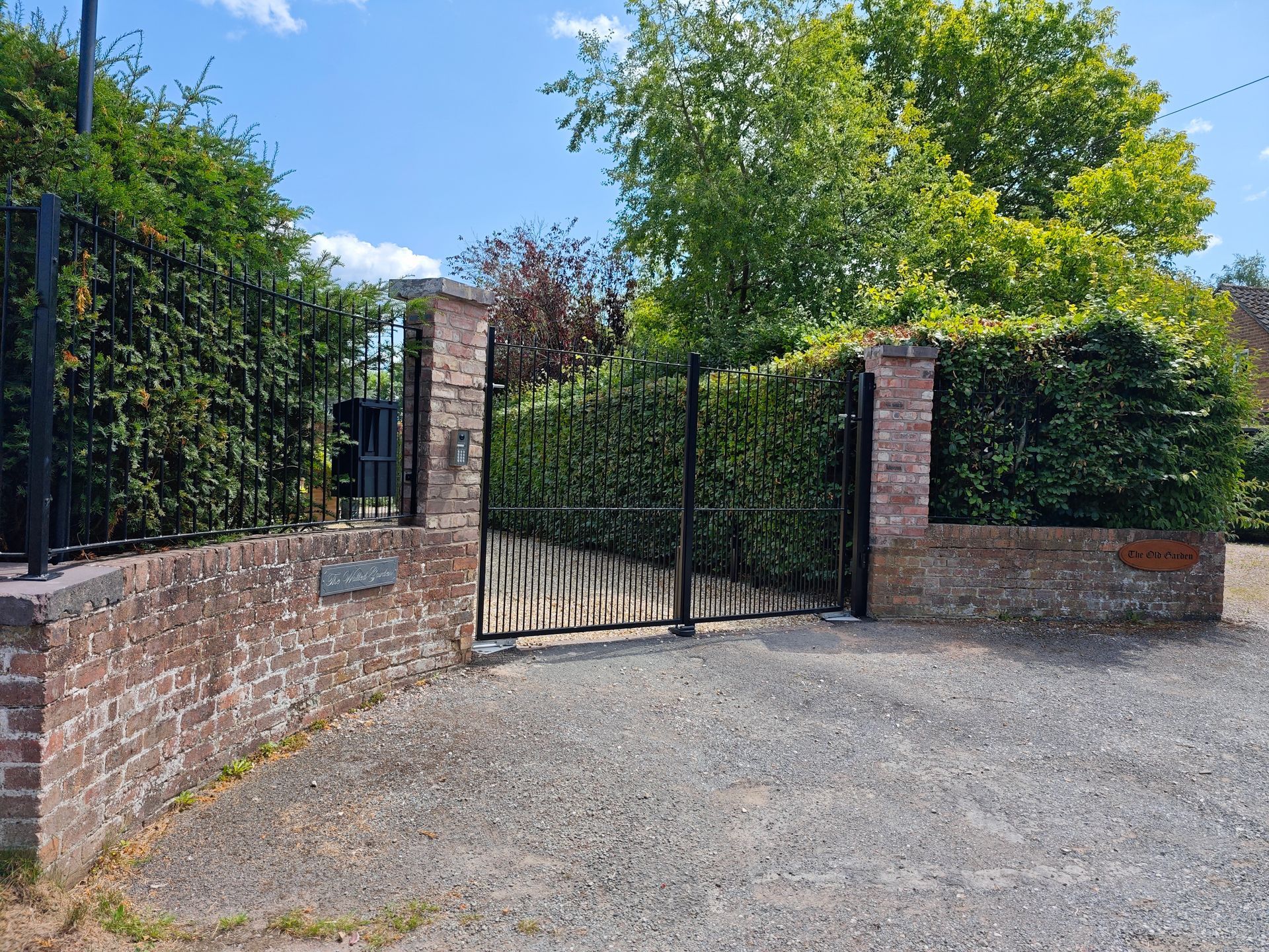 Working closely with a local steel fabricator RES Ltd we installed Nice 24volt L-Fab underground motors to these custom built gates. A 180 degree mechanism was installed to one leaf to open wider than normal and when closed security was enhanced by the installation of a Locinox electromagnetic drop bolt. Hikvision IP intercom was also installed to provide video and audio communication from the gate to the household as well as mobile phones.