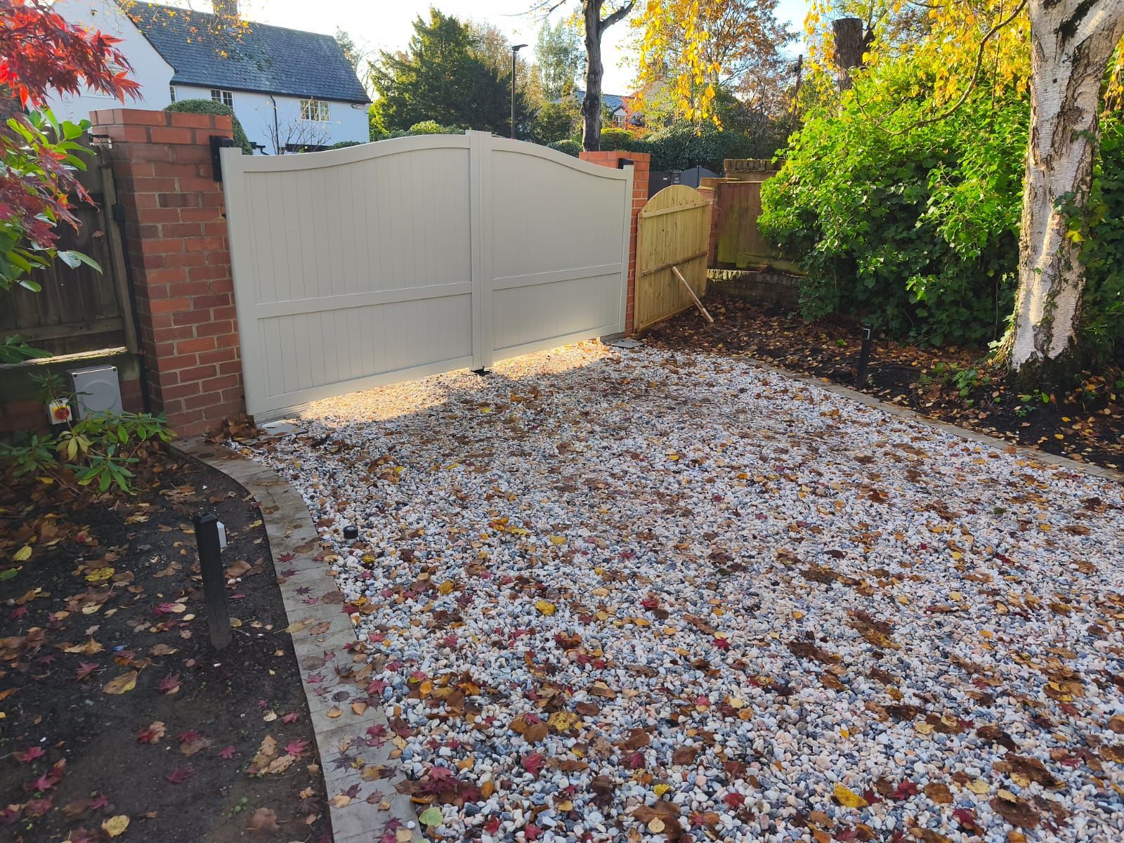 Powder coated to match the house windows these aluminium gates are mounted to Nice 24volt underground motors. They are opened by remote control key fobs and an AES Prime 7 GSM intercom.