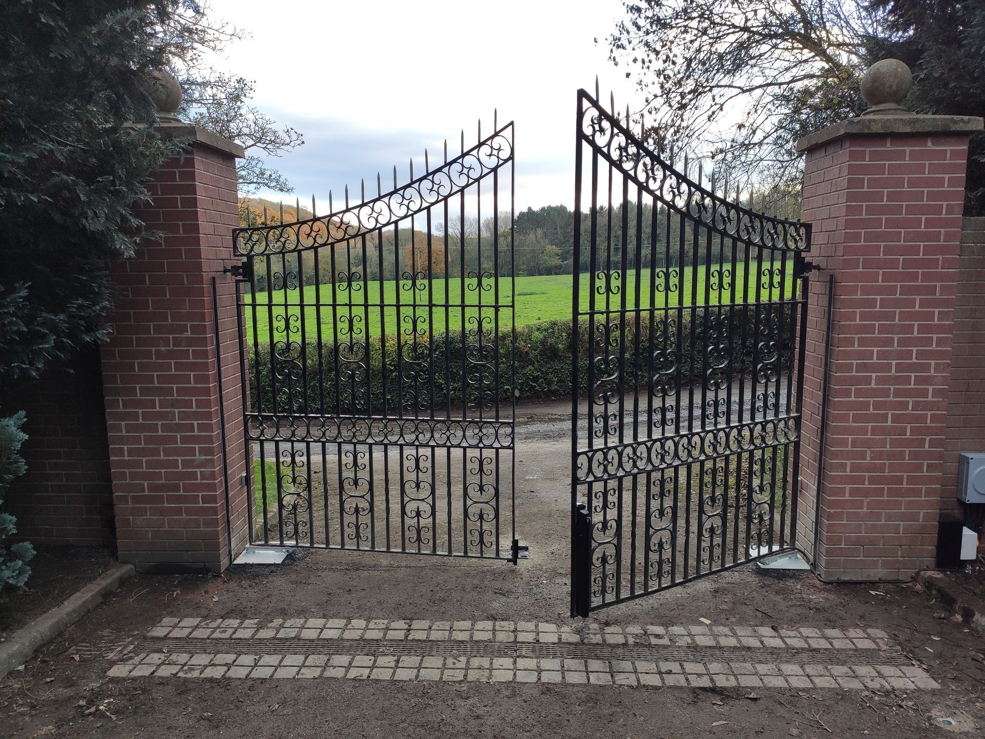 24 volt underground motors installed to replace faulty ones on existing wrought iron gates. The gate hinges had to be ground off and re-welded due to incorrect pivot points. A Locinox electro drop bolt was installed to offer extra security as it raises and lowers automatically when the gates are operated.